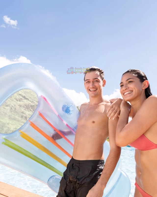 Яркие разноцветные полосы на матрасе Интекс, несомненно, понравятся и детям, и взрослым.