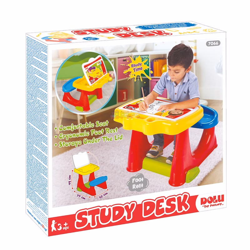 Стол отлично смывает следы фломастеров, пластилина, красок и другие следы после творчества ребенка. Так же продуман наклон стола для того чтобы ребенок ровно сидел и не горбился. Стульчик широкий, поэтому у ребенка не будут передавливаться ножки. Под столешницей расположена балка цилиндрической формы, благодаря которой ребенок будет упираться ножками и не портить спину при сидении.