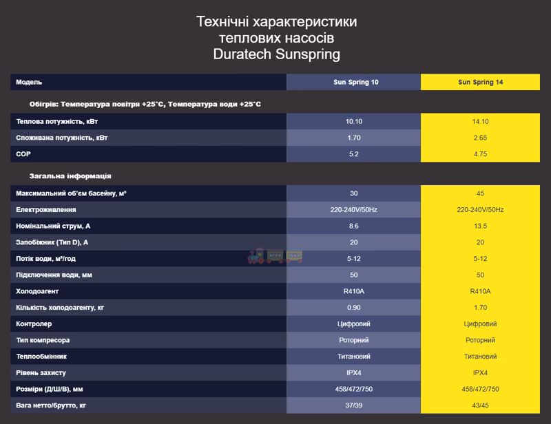 Тепловой насос Duratech Sunspring 14 кВт (Бесплатная Доставка) — это современное и эффективное решение для подогрева воды в каркасных и домашних бассейнах объёмом до 45 м³. Модель разработана для максимально простого подключения по системе Plug&Play — без сложного монтажа, инструментов и дополнительных настроек. Достаточно подключить устройство к фильтрационному насосу и сети 220–240 В, чтобы начать эксплуатацию.