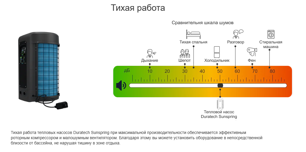 Duratech Sunspring 10 кВт — практичное решение для продления купального сезона и поддержания комфортной температуры воды с минимальными затратами. Производство — Бельгия. Гарантия — 2 года.