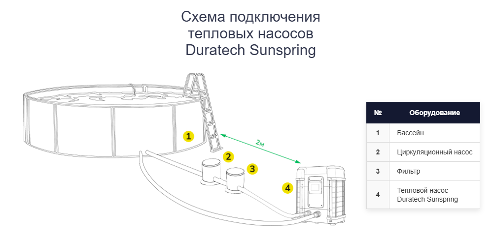 Тепловой насос Duratech Sunspring 10 кВт (Бесплатная Доставка) — это современное и экономичное решение для эффективного подогрева воды в каркасных и домашних бассейнах объёмом до 30 м³. Модель сочетает высокую производительность, простоту подключения и надёжность в эксплуатации.