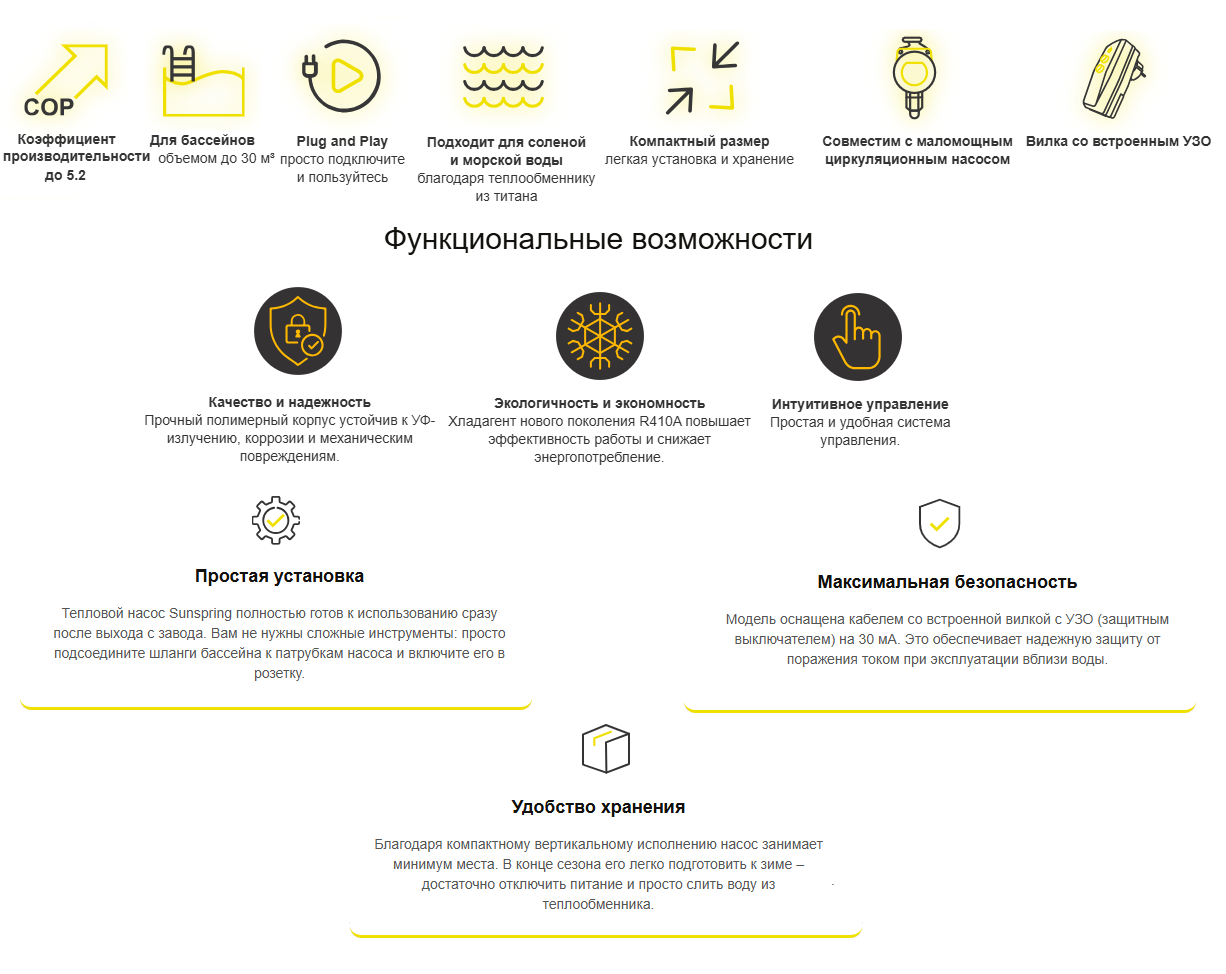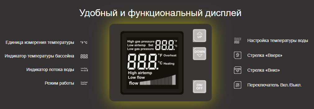 Титановый теплообменник устойчив к коррозии и воздействию химических реагентов, используемых для очистки воды. Прочный полимерный корпус с защитой от ультрафиолета сохраняет прочность и внешний вид даже при длительной эксплуатации на открытом воздухе.