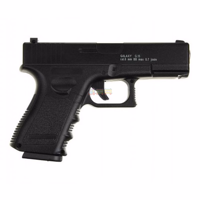 Galaxy G.15+ — це пружинний страйкбольний пістолет, створений за мотивами легендарного Glock 17. Модель вирізняється реалістичним зовнішнім виглядом, відчутною вагою та якісним виконанням, що робить її відмінним вибором для тренувальних ігор, розважальної стрільби та колекціонування.