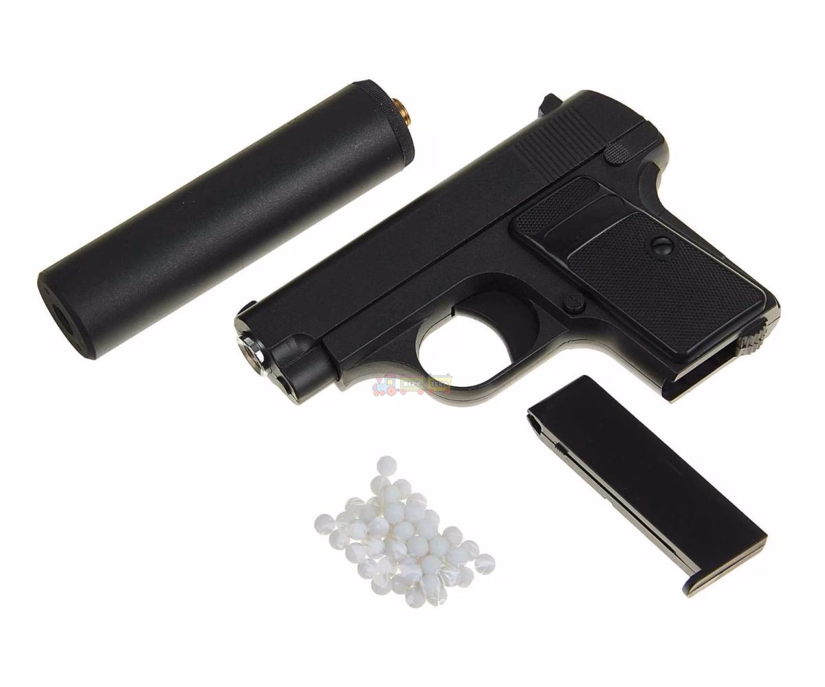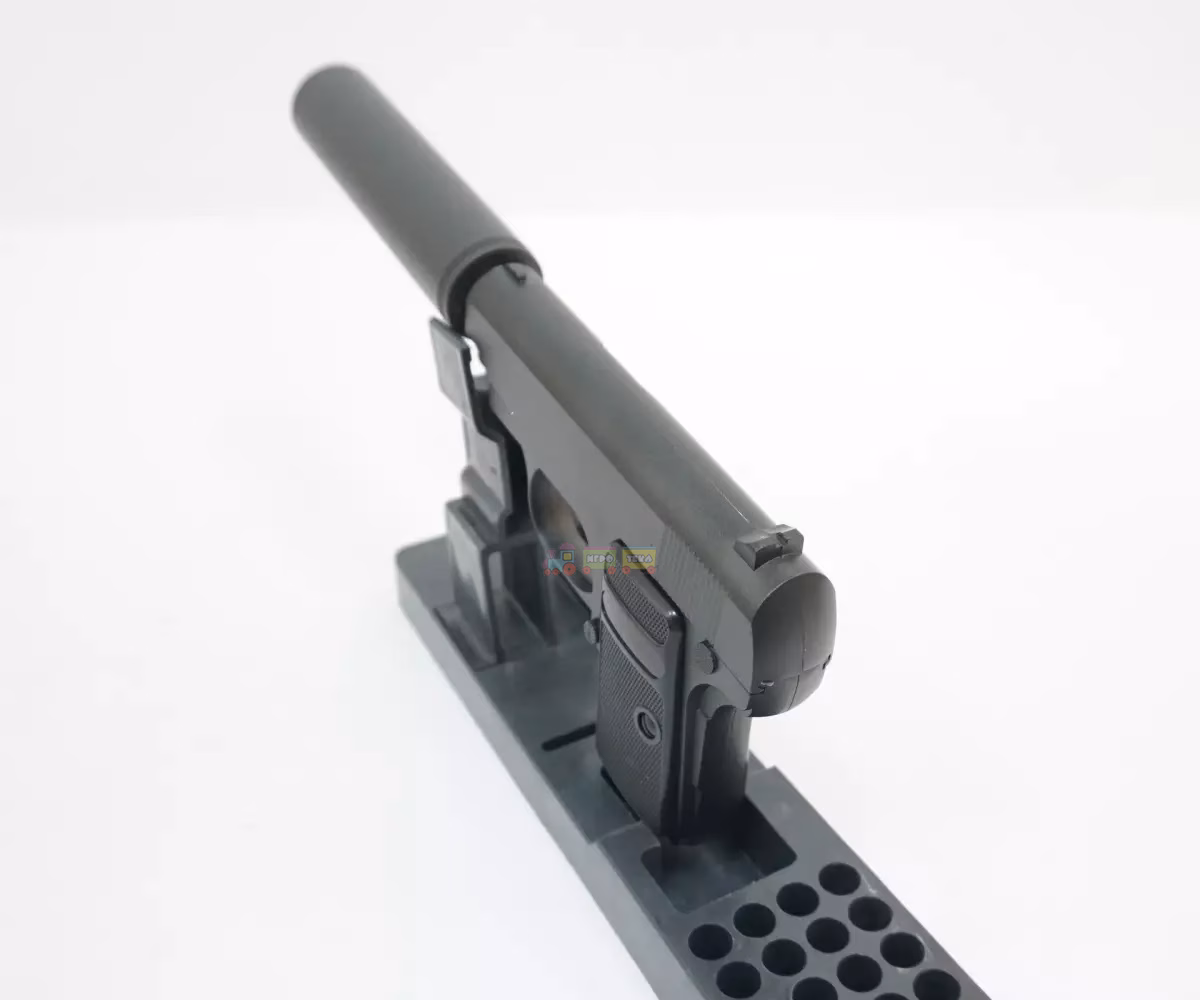 У комплекті передбачено магазин на 7 кульок та макет глушника. Пістолет постачається в акуратній картонній упаковці та стане гарним вибором для колекції або активних ігор.